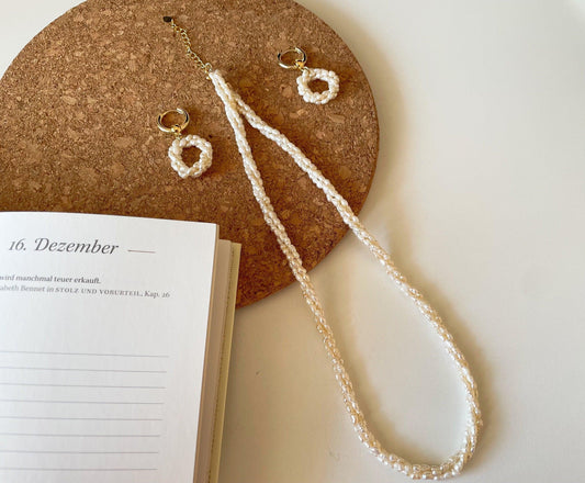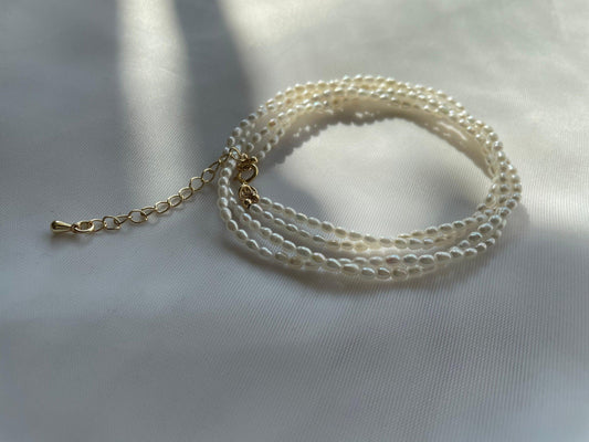 Elegant twisted pearl necklace in 14K gold and freshwater rice pearls